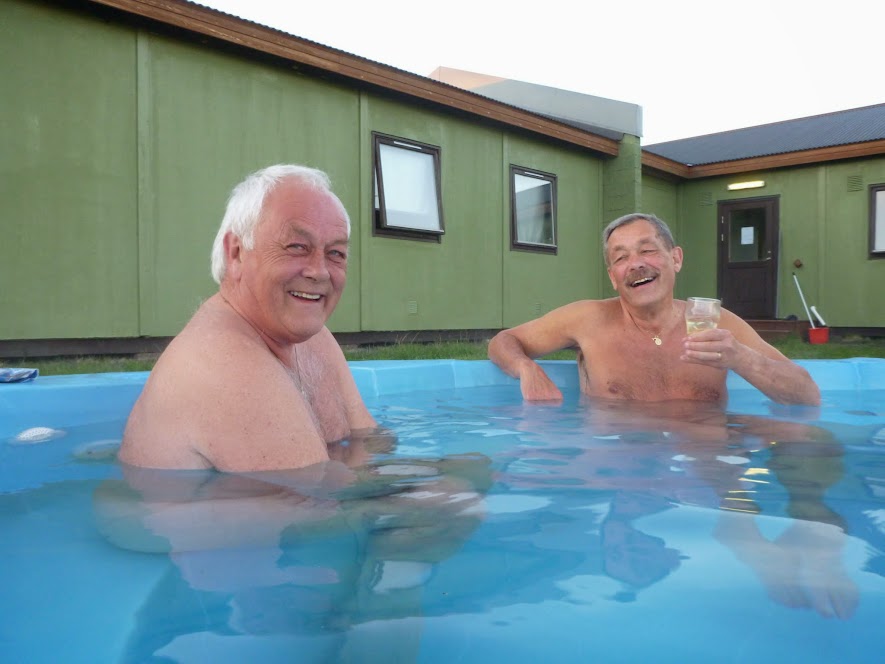 Jeg hadde jo min fødselsdag der oppe, og etter en god middag, måtte vi i "heitta pottur", et lite basseng utafor huset med vann på jamt 40 gr. Med noe godt i glasset på bassengkanten, var det en flott avrunding av dagen.